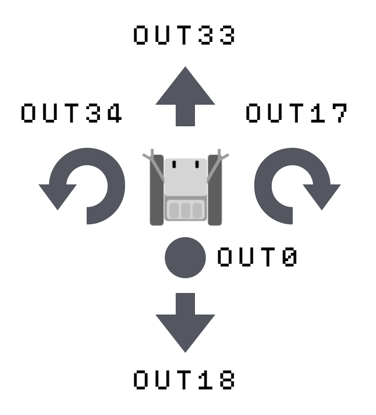 OUT33でぜんしんスタート、WAIT180で3びょうまって、OUT0でていし